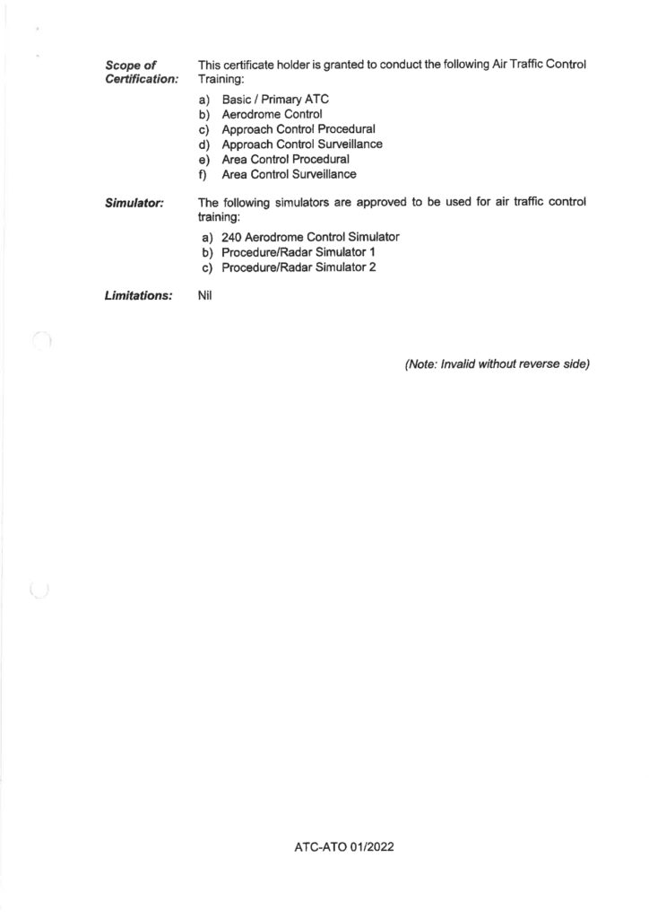 Brunei DCA — ATC Approved Training Organisation Certificate